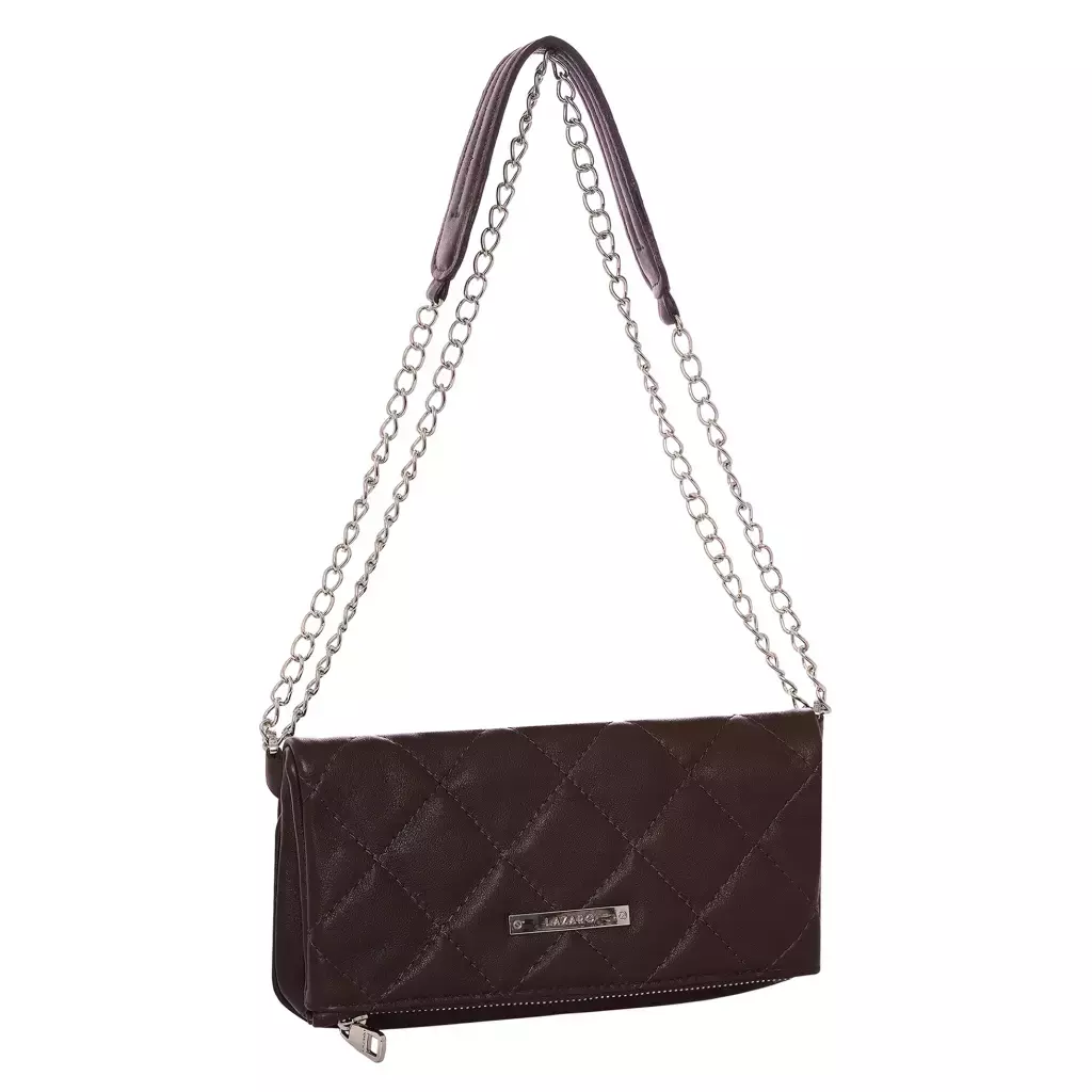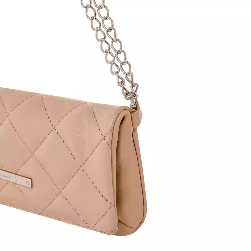 El acceso principal es mediante un cierre metálico que asegura tus pertenencias con un toque de estilo. Los herrajes niquelados y una cadena para colgar del hombro le dan un toque de distinción y modernidad.