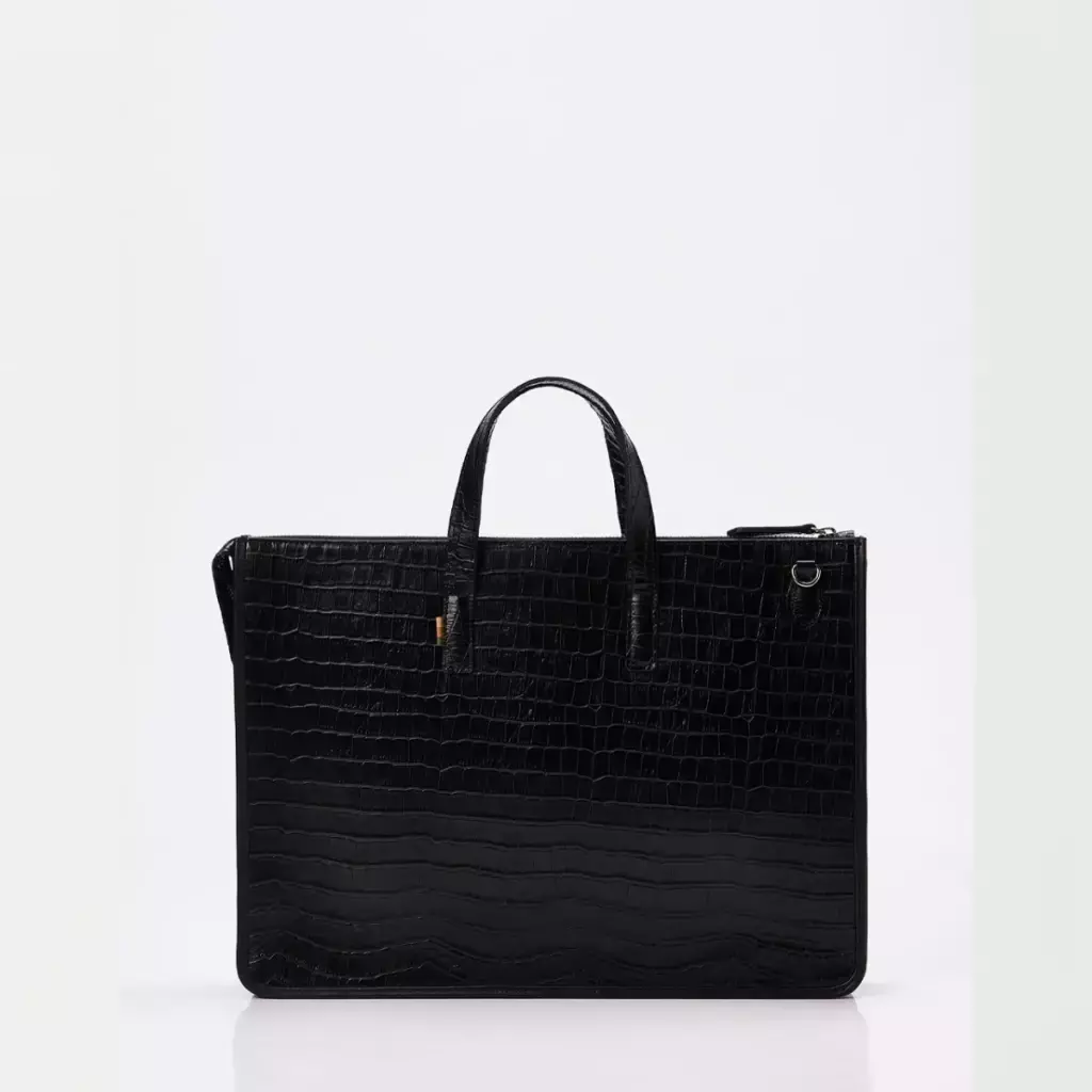 El Maletín Mónaco es uno de nuestros modelos más icónicos, perfecto para quienes buscan combinar elegancia, inteligencia y funcionalidad en sus días de trabajo. Su diseño, de estructura rígida y hecho a mano en cuero croco, está pensado para elevar tu estilo.