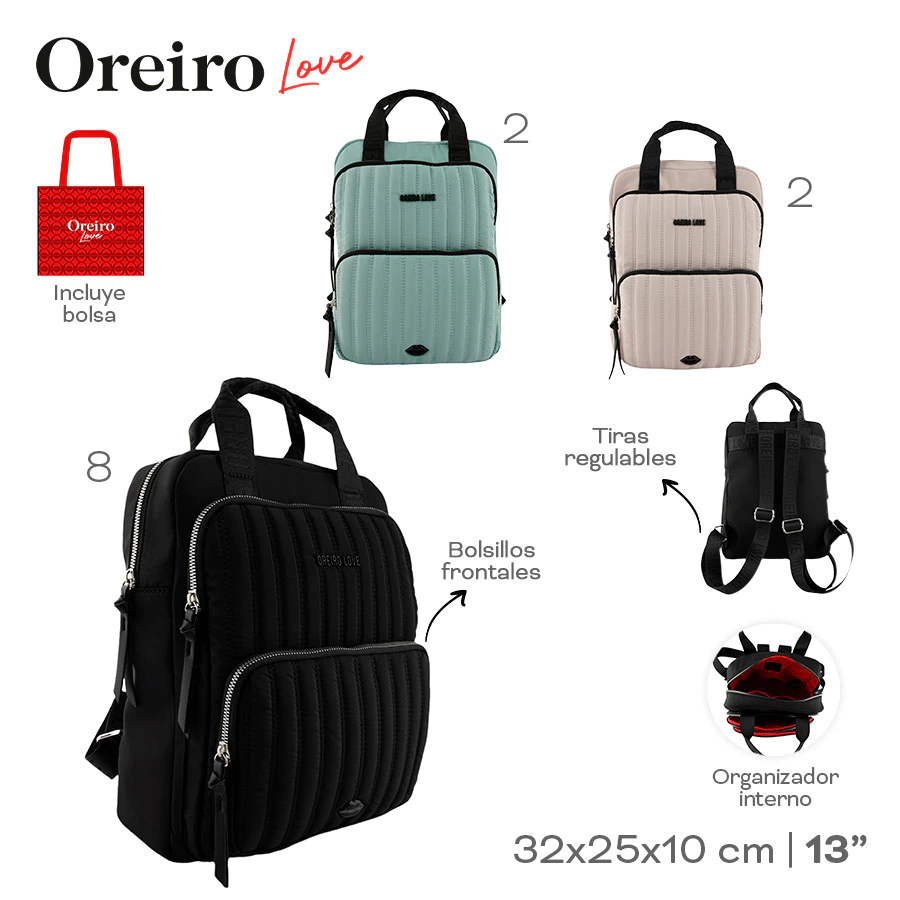 Medidas: 32x25x10 cm Correas: Regulables para mayor comodidad Bolsillos: 2 frontales con cierre + 1 interior con cierre